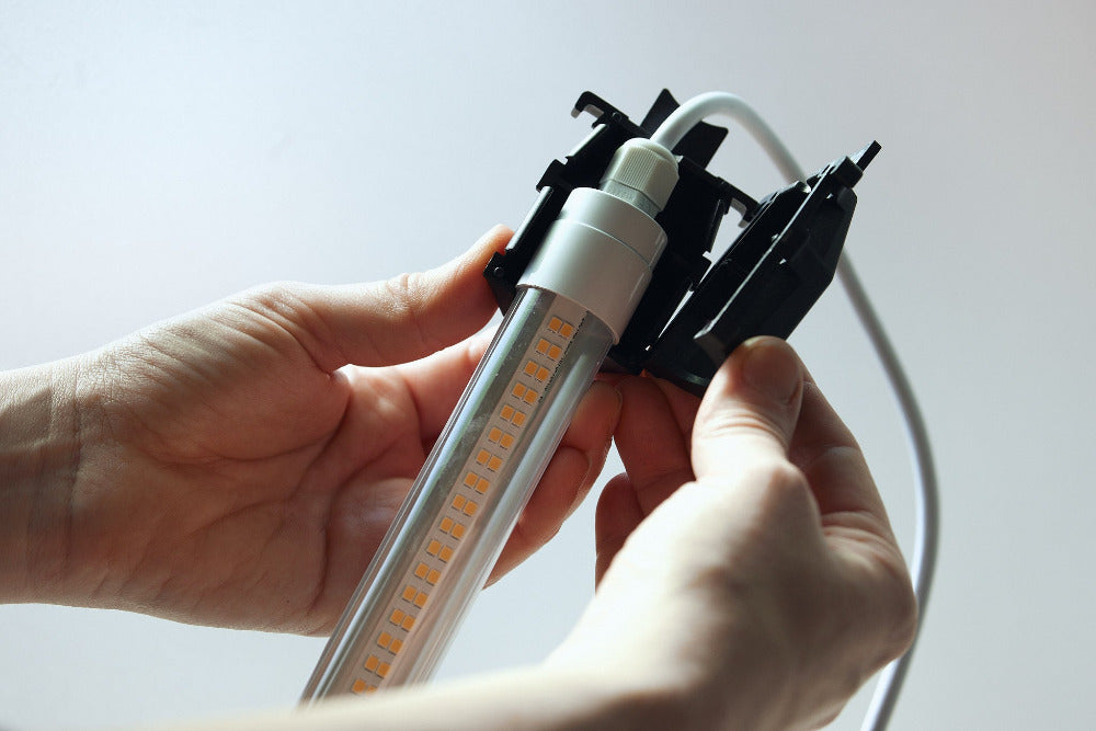 Die mitgelieferten Montageclips und die Daisy chain ermöglichen eine einfache Installation. Die von den RFLECT Tubes erzeugte Wärme steigert den Stoffwechsel der Pflanze und reduziert die relative Luftfeuchtigkeit im Kronendach.